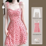 French pure lust style floral suspender dress suit summer thin sun protection clothing sexy hot girl skirt